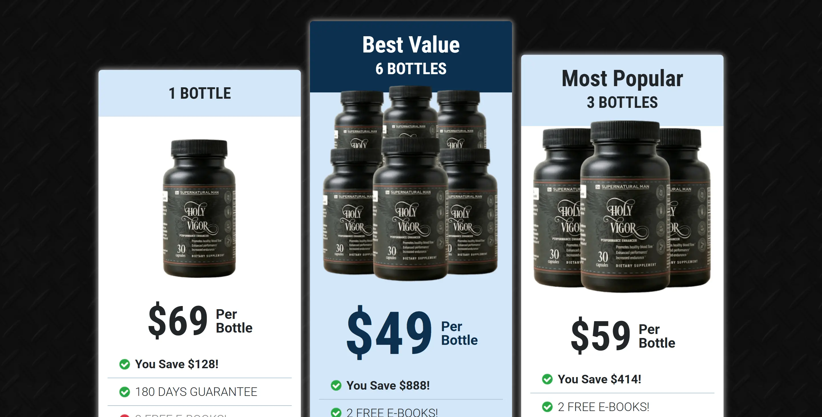 Holy Vigor™ is marketed as a natural formula designed to support male vitality, confidence, and everyday performance. For current pricing, available bundles, bonus e-books, shipping, and the 180-day money-back guarantee, use the official site link below.